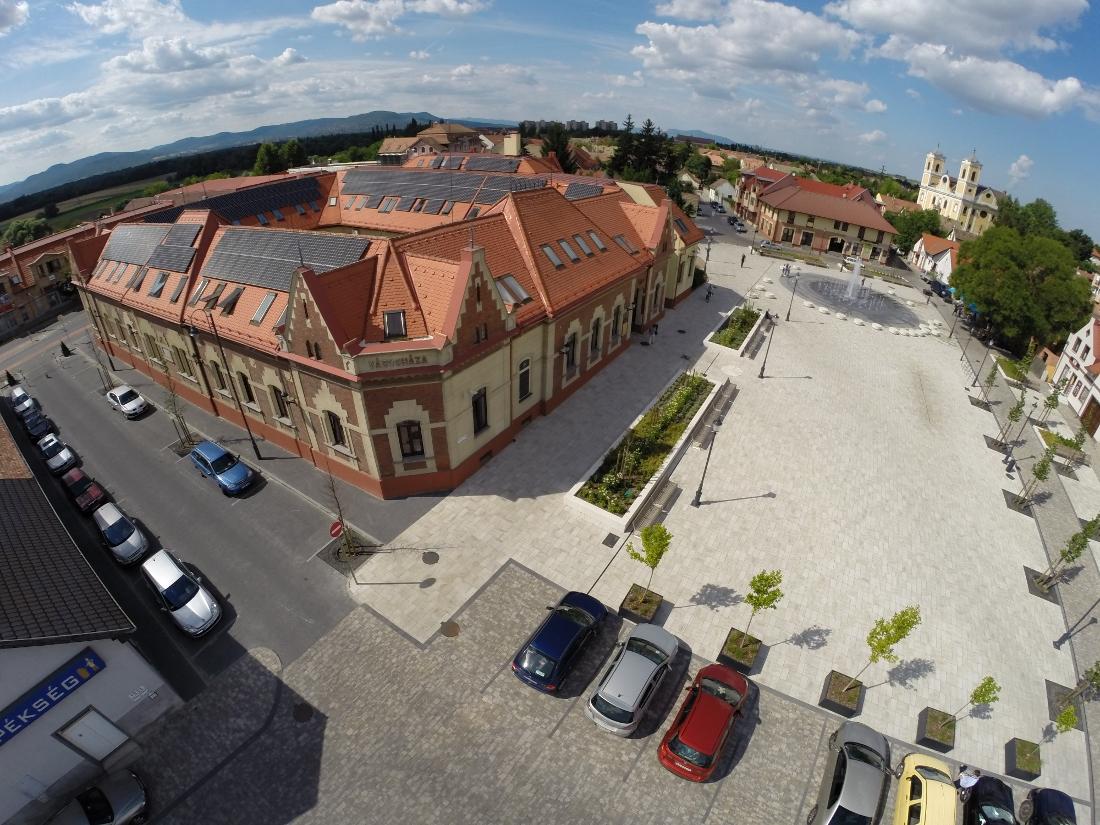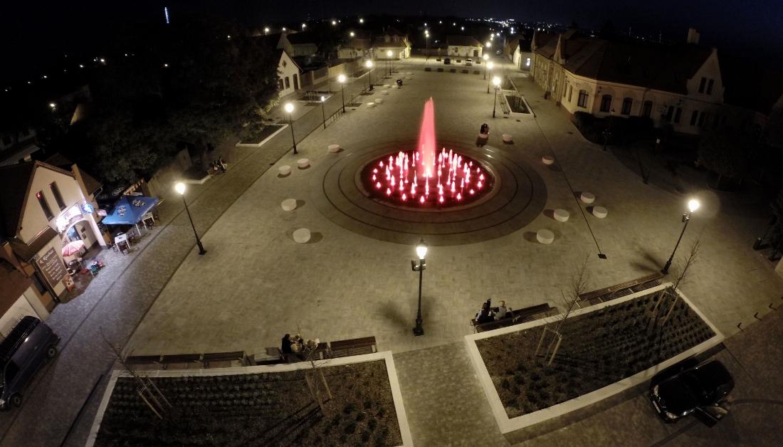 Dunakeszi város főterének építése kapcsán mintegy 6.500 m2 területen készült díszburkolat, a tér központi részén egy 18 m átmérőjű, szabályos kör alakú, természetes gránit kövekből készült, fény és hangjátékkal továbbá történelmi időspirállal rendelkező szökőkúttal.