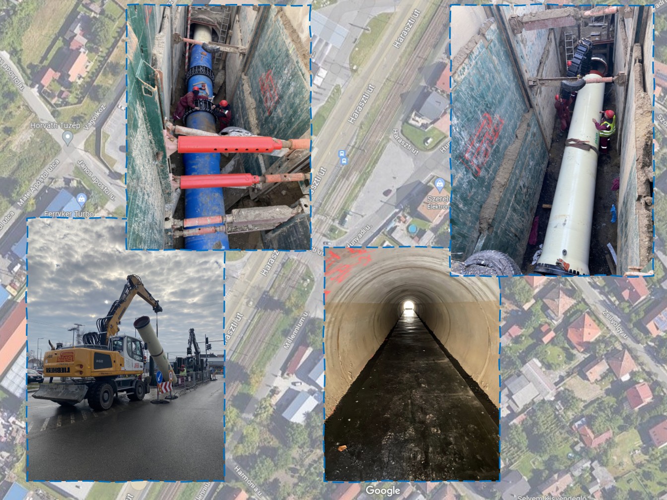 Since the mid-1990s, we have been continuously involved in the reconstruction of the sewer network in the capital. We are carrying out the reconstruction of outdated brick and bauxite concrete sewers and the reconstruction without excavation (NO DIG) as a pre-qualified contractor of the Budapest Sewage Works Ltd.